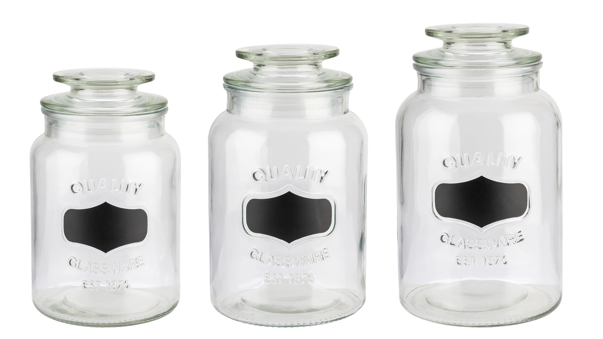 Ganz im Stil alter Apothekergläser kommen diese drei Vorratsgläser daher.
