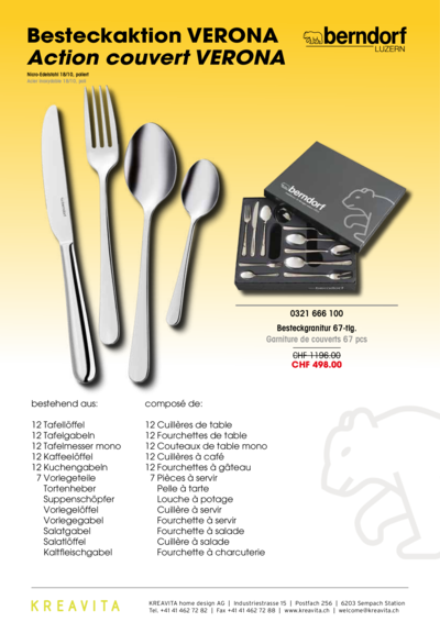 Toutes dans une boite, que vous avez avec notre boite avec 67 pieces de modèle Verona. Nous vous proposons ce à un prix sensationnel.